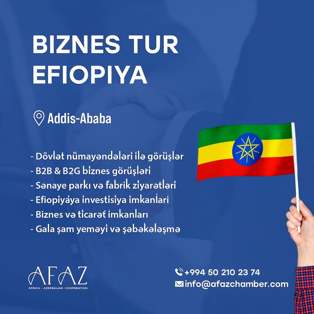 Afrika–Azərbaycan Cooperation təşkilatının təsisçisi və rəhbəri Rəna Qəfərova elan edib ki, bu ilin sonunda Azərbaycan iş adamları, istehsalçıları və ixracatçıları üçün Efiopiyaya genişmiqyaslı biznes səfər təşkil olunacaq.