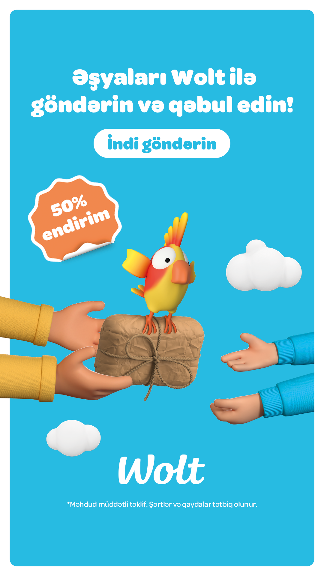İstifadəçilər üçün ən xoş xəbər isə budur ki, onlar ilk ay ərzində bütün çatdırılmalara 50% endirimdən yararlana biləcəklər, kampaniya başa çatdıqdan sonra isə ilk sifarişdə 50% endirim əldə edəcəklər. Xidmət artıq Wolt-un fəaliyyət göstərdiyi bütün şəhərlərdə aktivdir — Bakı, Gəncə, Xırdalan, Sumqayıt, Lənkəran, Naxçıvan, Xankəndi və Mingəçevir daxil olmaqla.
