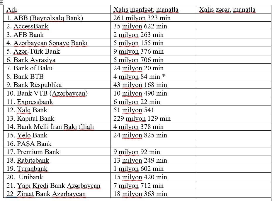 21 bank mənfəət açıqladı - SİYAHI