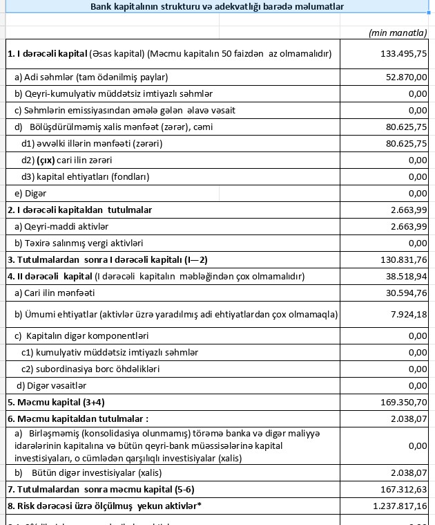 2025-ci ilin sonuna Bank of Baku-nun məcmu kapitalı 167 milyon 312 min manat olub. Bu, 2024-cü ilin sonundakı 151 milyon 103 min manat ilə müqayisədə 16 milyon 209 min manat və ya 10,7% artım deməkdir. Kapitalın artması bankın maliyyə dayanıqlığını gücləndirir və gələcək inkişaf üçün əlavə imkanlar yaradır.