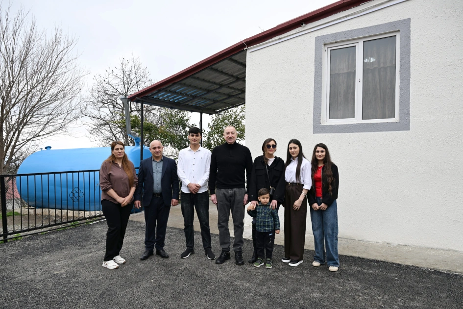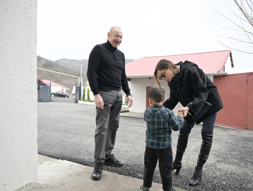 Marja xəbər verir ki, sonra dövlətimizin başçısı və birinci xanım kəndə köçmüş Bəybala Qasımovun evində olublar.