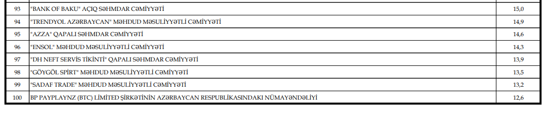 2025-ci ildə ən çox vergi ödəyən və bu barədə məlumatın açıqlanmasına razılıq verən 100 vergi ödəyicisi (büdcə təşkilatları istisna olmaqla)