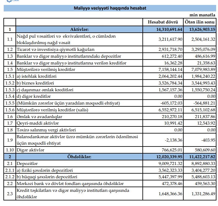 AKTİVLƏRİ, O CÜMLƏDƏN KREDİT PORTFELİ BÖYÜYÜB