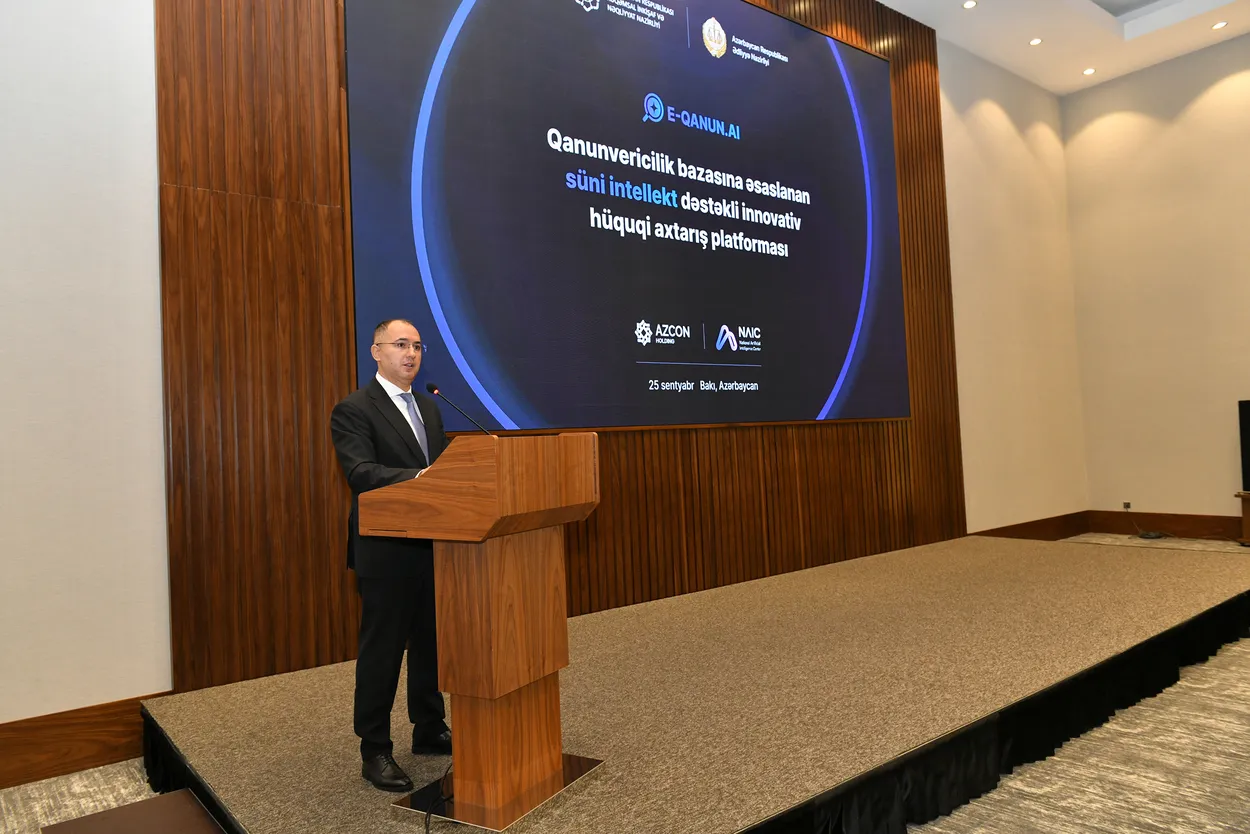 “E-qanun.ai” Ədliyyə Nazirliyi və Rəqəmsal İnkişaf və Nəqliyyat Nazirliyinin birgə müəyyənləşdirdiyi texniki şərtlər əsasında AZCON Holding şirkətlərindən olan Milli Süni İntellekt Mərkəzi tərəfindən hazırlanıb. Sistem hüquqi aktların vahid elektron bazasına əsaslanan, süni intellekt dəstəkli, innovativ hüquqi axtarış platformasıdır.