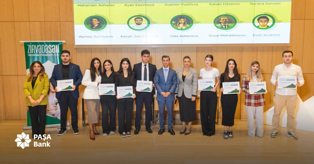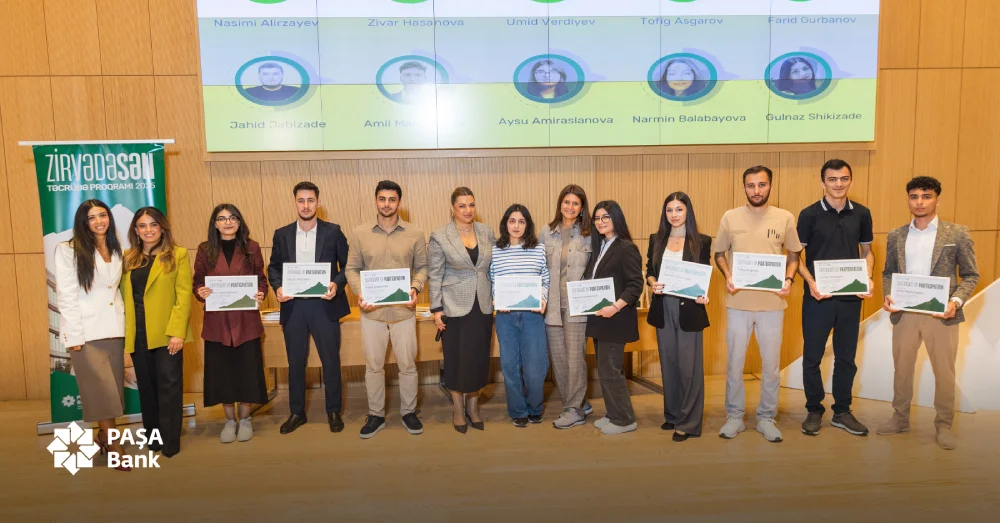 Ölkənin aparıcı korporativ maliyyə institutu “PAŞA Bank”ın təqdim etdiyi “ZirvədəSən” təcrübə proqramının 58 iştirakçısı 3 ay müddətində peşəkar mentor dəstəyi almış, müxtəlif təlim sessiyalarında iştirak edərək bilik və bacarıqlarını artırmışdır.