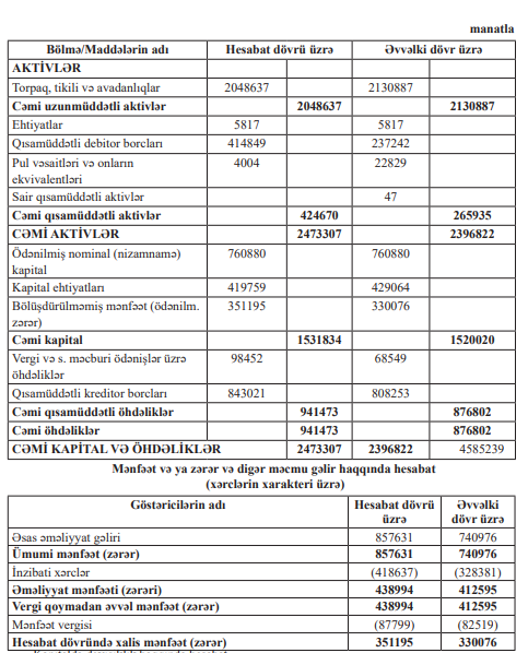 “Bakı Dəmir Beton - 4” ASC-nin 31 dekabr 2025-ci il tarixinə maliyyə vəziyyəti haqqında hesabatı