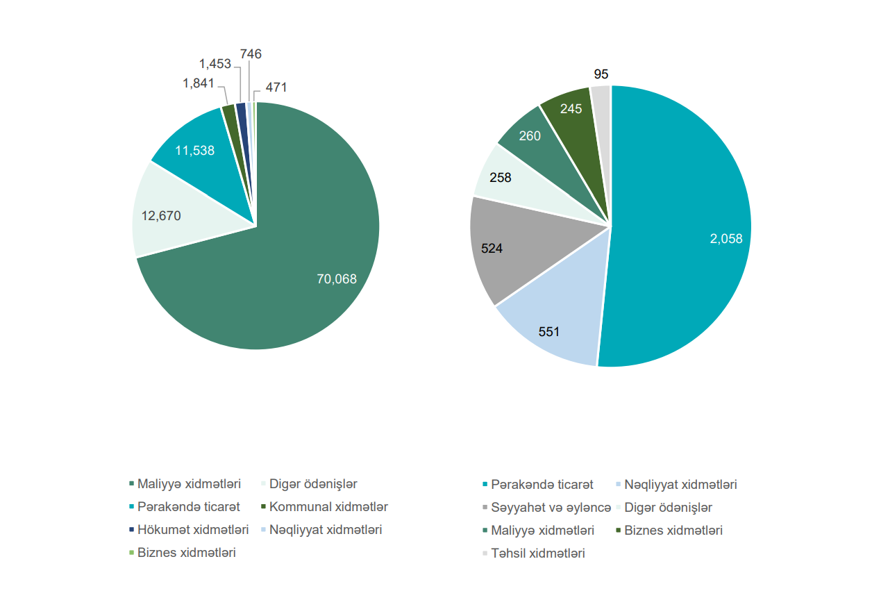 Ödəniş kartları vasitəsilə ölkədaxili nağdsız ödənişlərin 70.9%-i maliyyə xidmətləri, 11.7%-i isə pərakəndə ticarət ödənişləri əhatə edir
