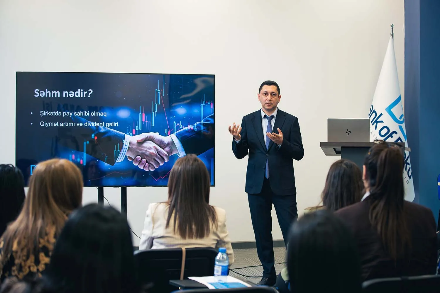 Tədbirdə təlimçi qismində Bank of Baku-nun KOB bankçılıq departamentinin direktor müavini, eləcə də Azərbaycan Dövlət İqtisad Universitetinin müəllimi İsmayıl Məmmədov və Bank of Baku-nun Xəzinədarlıq departamentinin şöbə müdiri Hüseyn Hüseynli çıxış edib.