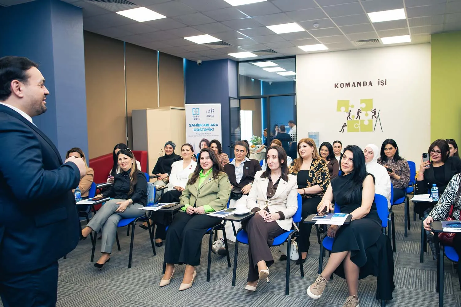 “25 Aprel – Sahibkarlar Günü” ərəfəsində Bank of Baku-nun təşkilatçılığı və Azərbaycanda Qadın Sahibkarlığının İnkişafı Assosiasiyasının (AQSİA) dəstəyi ilə keçirilən təlimdə 20-dən çox sahibkar qadın iştirak edib. “Praqmatik Maliyyə: Qadın Sahibkarlar üçün Artım Modelləri” mövzusunda keçirilən təlimin əsas məqsədi qadın sahibkarlar arasında maliyyə savadlılığını artırmaq və bizneslərin dayanıqlı inkişafına töhfə verməkdir.