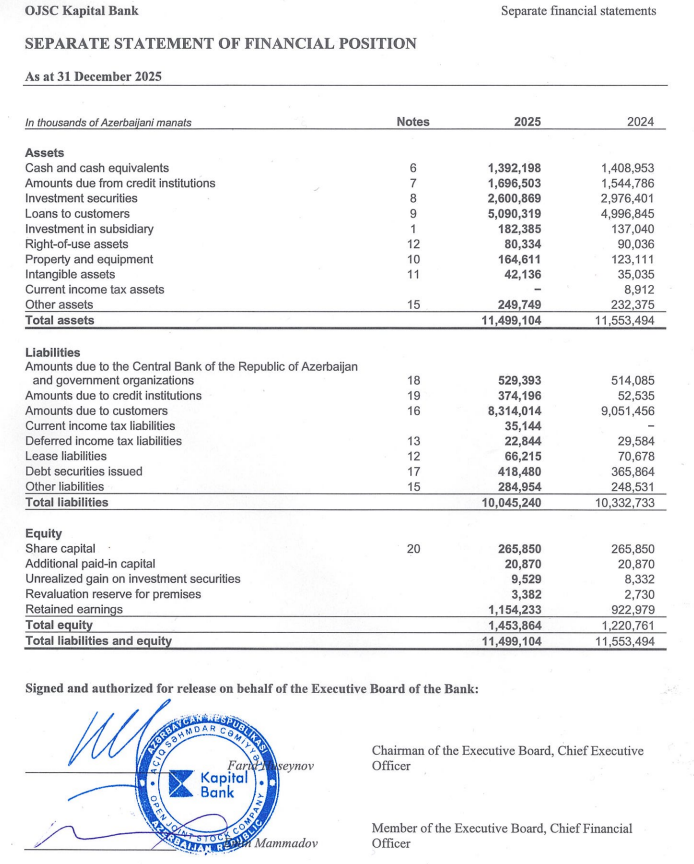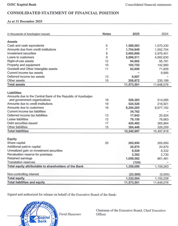 "Kapital Bank" audit olunmuş maliyyə göstəricilirəni açıqladı